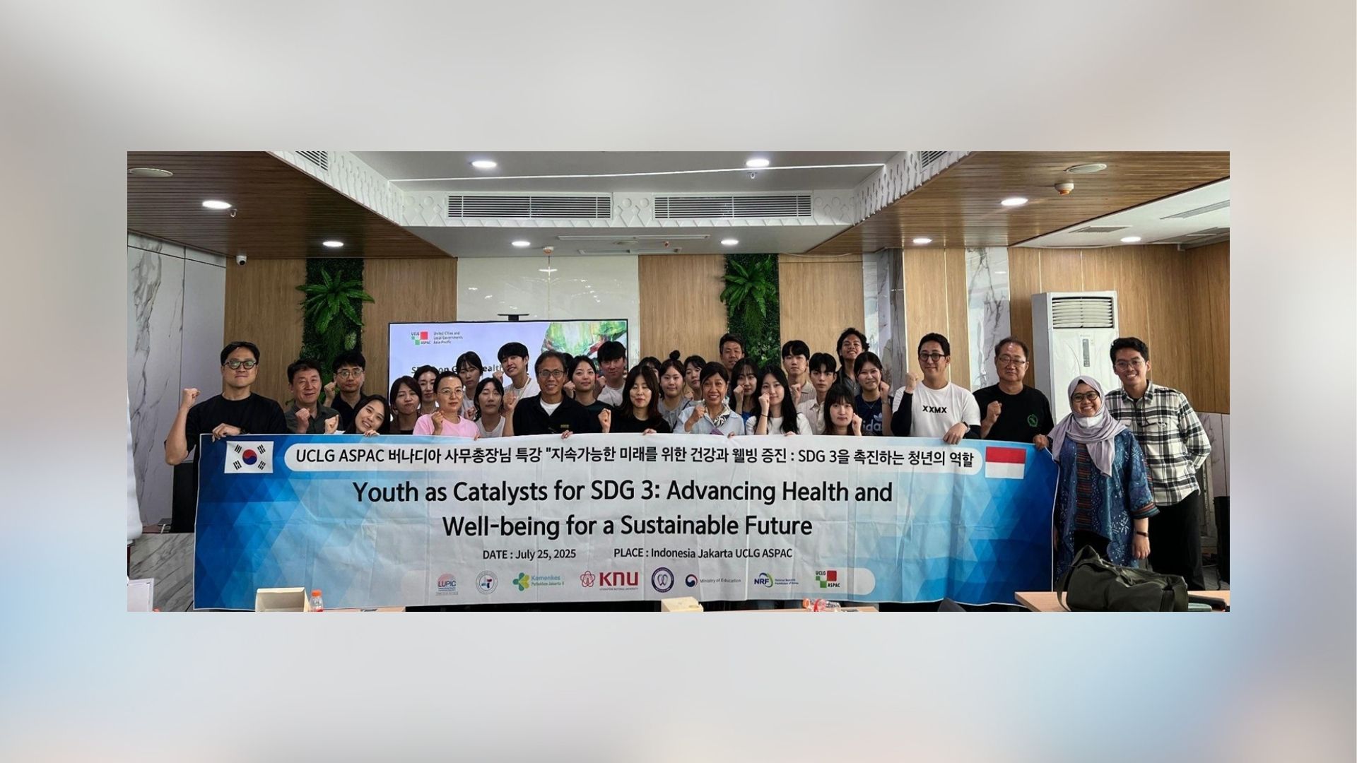 July 25, 2025 | Jakarta – UCLG ASPAC hosted an inspiring event, titled “Youth as Catalysts for SDG 3: Advancing Health and Well-being for a Sustainable Future.” The session welcomed a delegation of Korean students from Daegu Health College, Daejeon Health College, Gwangju Health College, and Kyungpook National University, seeking to explore how young people can play a transformative role in advancing the Sustainable Development Goals (SDGs), particularly SDG 3 on health and well-being.